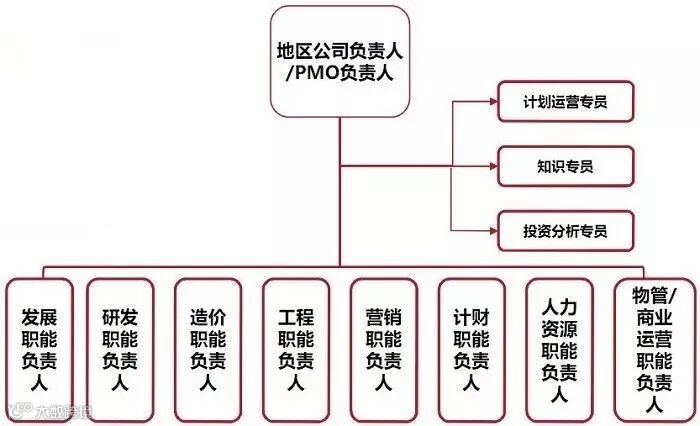 集团几圈管控各个城市/区域公司,区域公司设立完备的采购、研发、工程、营销等部门,但重要节点通过PMO体系由集团总部管控。