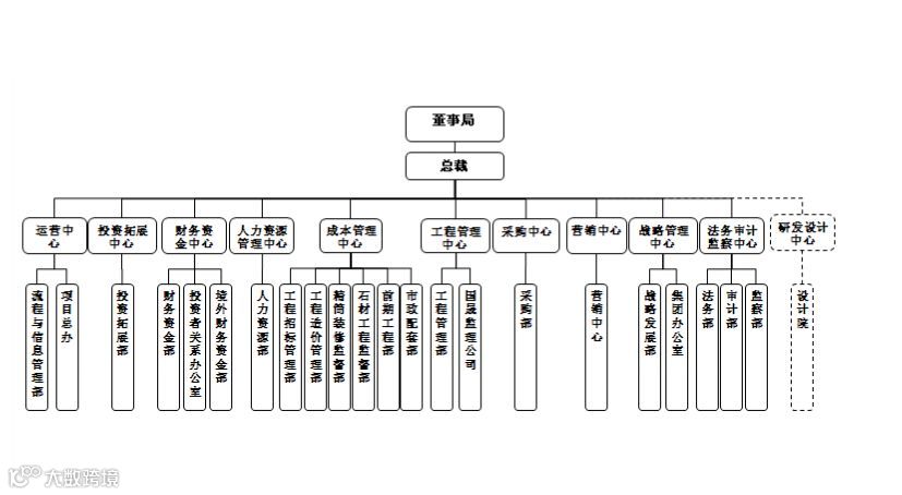 广东省外区域公司,包括7个职能部门(不含设计分院)和N个项目部。区域公司可自行决定是否成立投拓部门。在管理、采购、造价、人资、财务等部门及人员,实行区域与集团总部对应职能部门双重考核的管理体系。