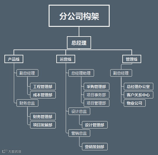 而万科一线公司的运营自由度相当大,以万科某分公司的组织构架为例,万科各区域及城市公司采用介于职能与矩阵管理之间的弱矩阵管理模式,没有采用项目管理模式。