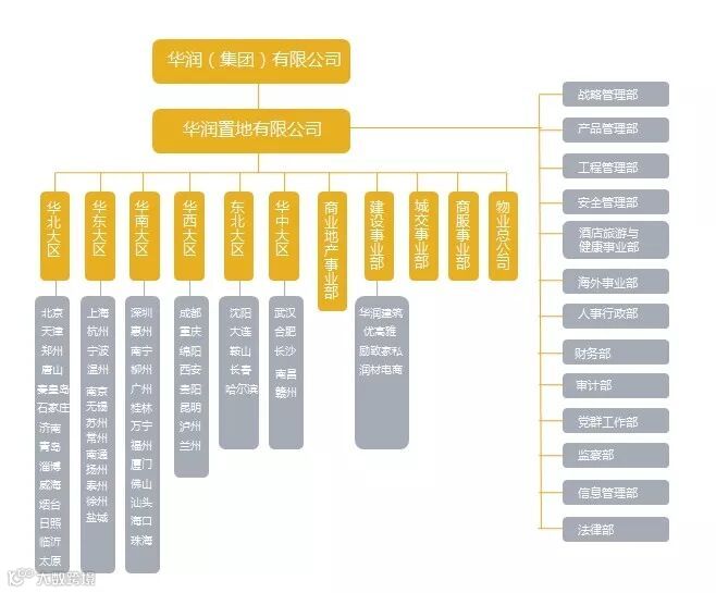 华润置地大区总部组织架构设置基本与总部对应,主要分为投资运营、设计管理、工程管理、营销管理等10大组织机构。