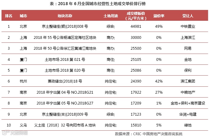 溢价率高位回落,投资拿地重归理性