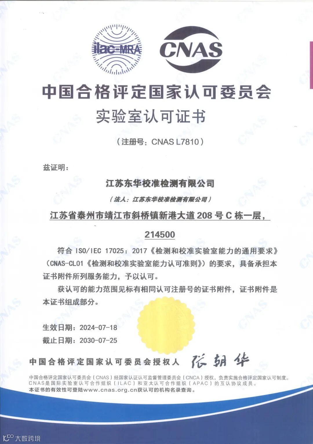 近日,江苏东华校准检测有限公司(东华测试子公司)完成了多维力/力矩传感器检测校准装置的定制化开发工作,并于2024年7月25日顺利通过CNAS认可(L7810),成为具备GB/T 43199-2023《机器人多维力/力矩传感器检测规范》检测能力的CNAS认可实验室,可对外开展相关第三方检测业务。