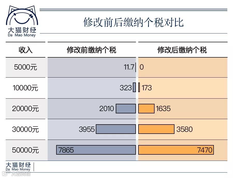 ▌❸ 很多人其实关心自己7月1日之后个税能减免多少,猫哥来举个例子说明吧: