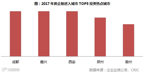 据CRIC监测数据统计,房企2017年新进入城市中,TOP5的城市分别是成都,嘉兴、西安、郑州,滁州。其中成都、西安和郑州为中西部二线城市,其余均为长三角三线城市。房企选择这些城市寻找新的业务拓展点,我们可以从中看出这些新扩张城市共同特点是具有人口、产业、交通支撑的优势。近几年,以西安、成都、郑州为典型的中西部核心城市相继推行的人才新政效果明显,城市人口数据均出现大幅增长态势,大批的人口迁入为购房增加潜在需求。最具代表性的是旭辉集团,作为20强的房企,旭辉在2017年热点城市西安、成都和郑州均有拿地。而以嘉兴、滁州为代表的长三角三四线城市也成为房企深化区域布局的投资热点城市,主要是因为这些区域的一二线城市“四限”政策趋严,房企不得不将战线下拉至三四线城市。