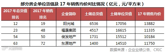 以运营能力、销售能力、合作能力见长的民营企业,在土储的转化能力上则令人期待。如福晟集团在17年销售只排在48名,但其总货值排名却在23名,这意味着企业手上有大规模的土储潜力等待开发,可预期企业未来只要能激活土地存量的潜力,未来无论在目标完成度上,或是在行业地位上都让人值得期待。