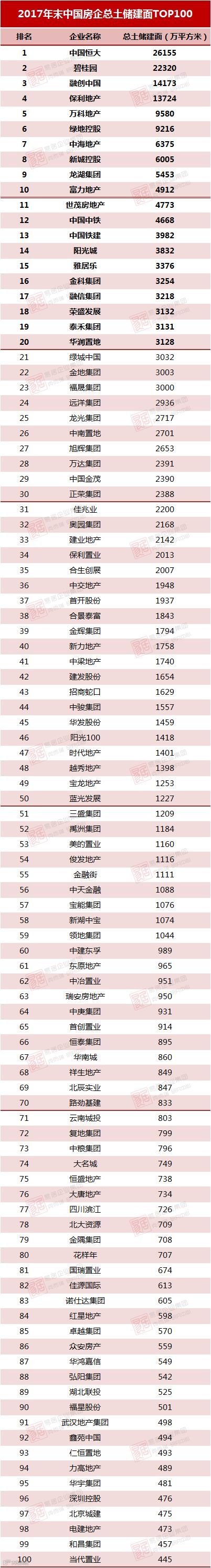 1.企业范畴:主营业务在中国内地的房地产开发企业;(华夏幸福、华侨城等企业的土地储备中含有大量产业用地和文旅用地且无法区分,暂不计入。)