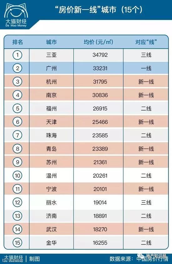 而房价的“新一线城市”就更有意思了——上榜的,有一线,有新一线,有二线,甚至还有两个三线城市。