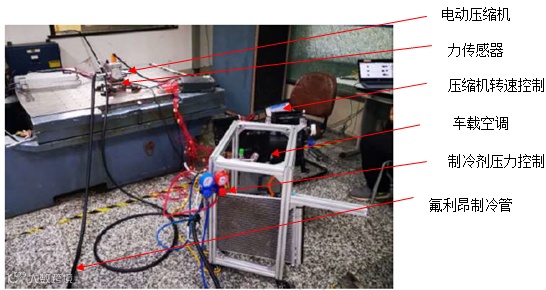 目前大力推广新能源汽车的时代背景下,新能源汽车中压缩机、空调等生产企业大量涌现,在空调压缩机的研究开发和生产控制中,对于激振力的测试是个重点,所谓激振力是电动压缩机总成回转不平衡质量及运行气流脉动等振动源在工作运转中产生的周期性简谐振动力,本次测试开展对某新能源汽车技术有限公司的电动压缩机进行激振力测试,并进一步分析该电动压缩机工作状态下产生的激振力是否符合国家相关标准,为客户后期产品改进提供了数据支持。