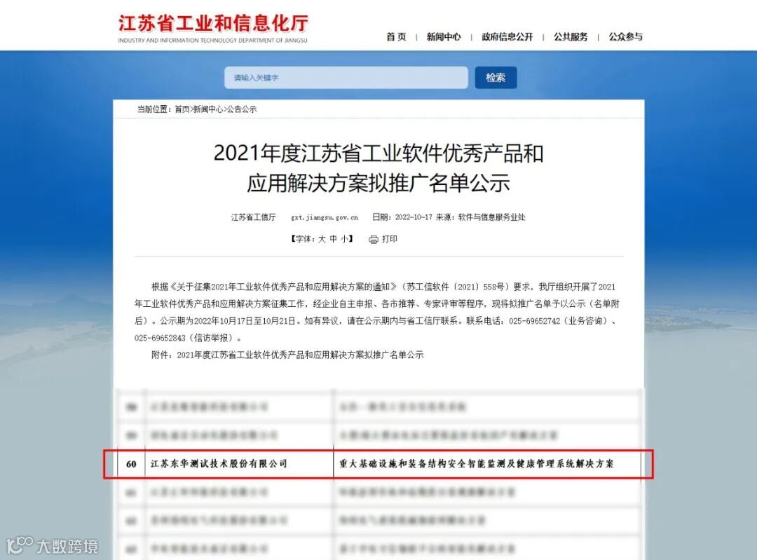 根据《关于征集2021年工业软件优秀产品和应用解决方案的通知》(苏工信软件﹝2021﹞558号)要求,我司《重大基础设施和装备结构安全智能监测及健康管理系统解决方案》荣获优秀应用解决方案。