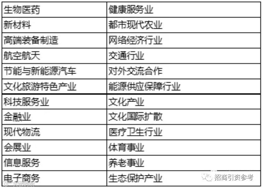 互联网、生物、新能源、新一代信息技术、新材料、文化创意和节能环保等战略性新兴产业。重点围绕生物医药、高端医学影像、基因技术、新能源汽车、高端材料、数字内容、高效储能等领域。战略性新兴产业重点领域:集成电路、新型显示、基因技术、高端医学影像、新能源汽车、高端材料、数字内容、节能环保。