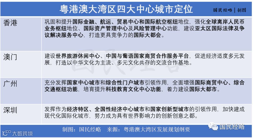 虽然广深港澳均为中心城市,但这四大城市定位分工各不相同。