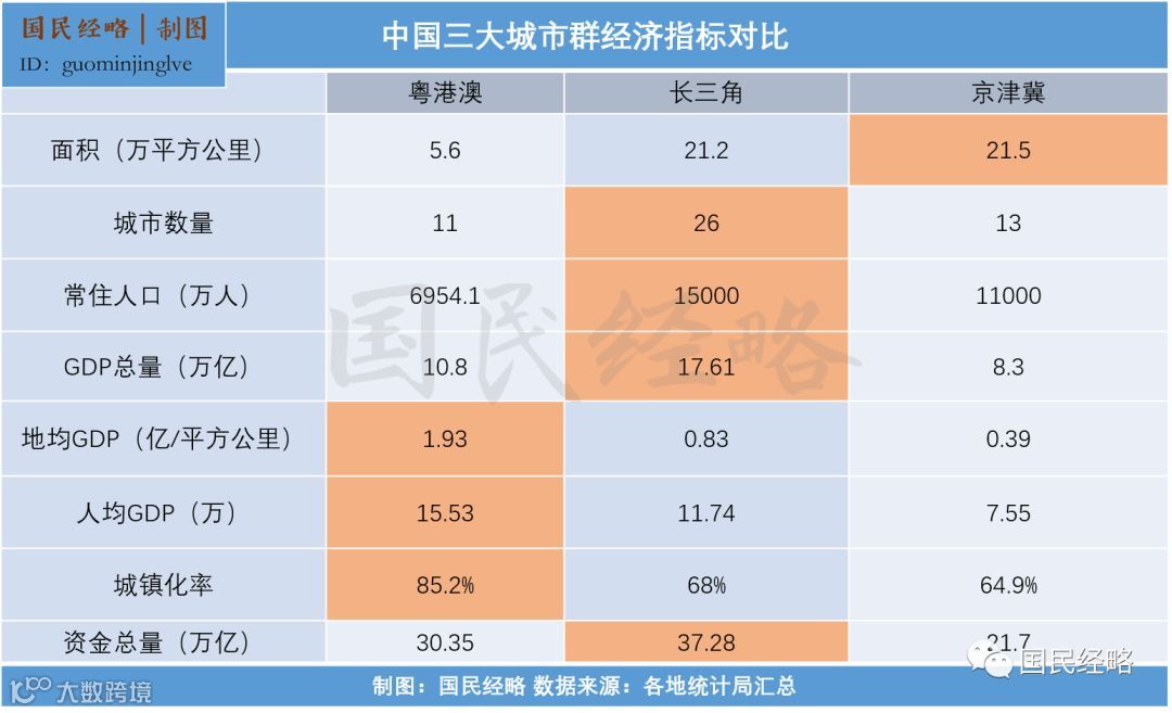更值得一提的是,粤港澳大湾区的人均GDP,超过长三角30%,同时是京津冀城市群的2倍有余。