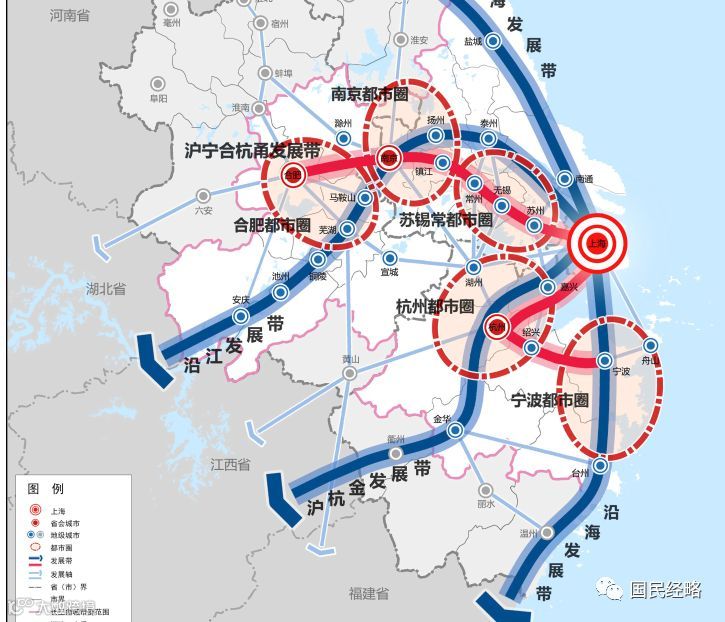 长三角横跨江浙沪安徽等四省市,遍及26个地级市,经济腹地最为广阔;