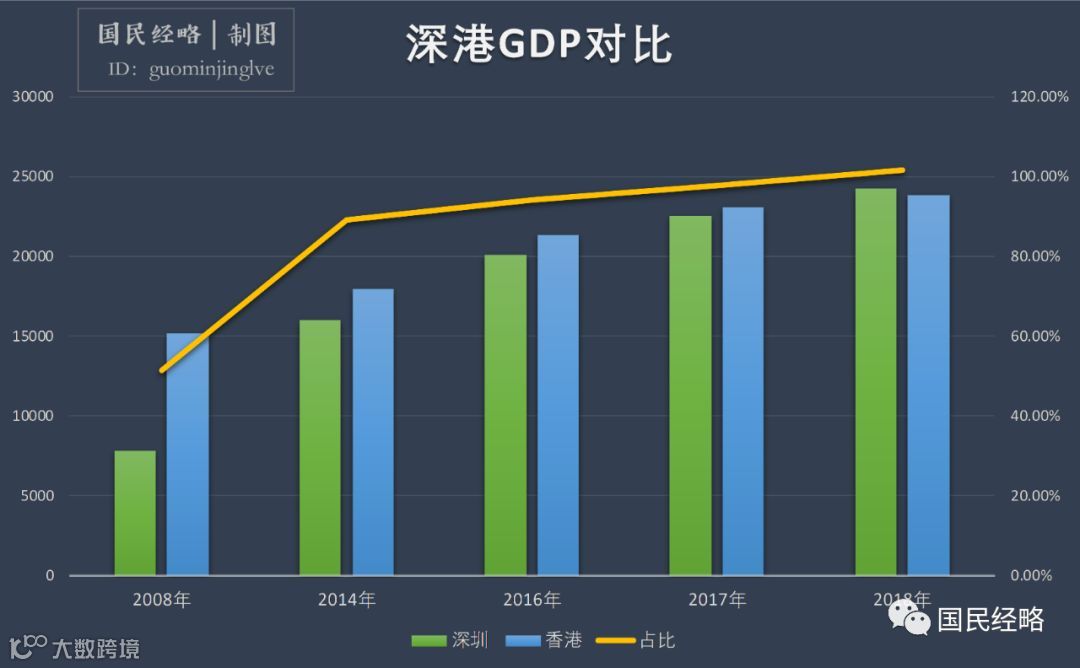 先说深港,香港深圳均属于一线城市,两地GDP基本不相上下,在金融、航运等方面有一定重合性,难免存在竞争关系。