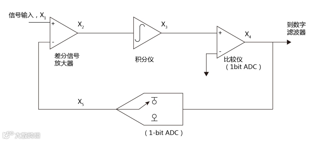 Σ-Δ ADC转换器的模拟部分是一个1bit模数转换器(ADC),就是一个非常简单的比较电路。大多数工作由数字部分通过过采样滤波完成,降低了芯片的制造成本。