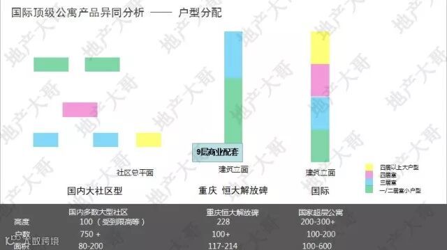 恒大解放碑作为超高层产品纳入到国际产品比较体系中, 228米的高度,和产品形态更接近全球高密度城市的产品趋势 。