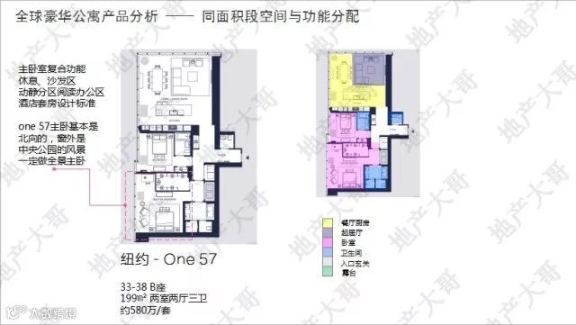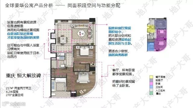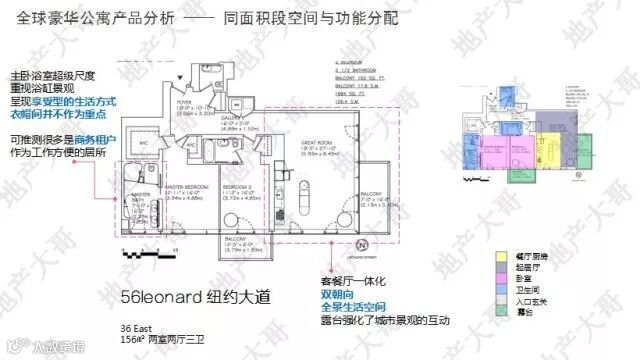 接下来是全球顶级公寓的同面积段空间和功能分析,详情见下图,我们不展开分析。