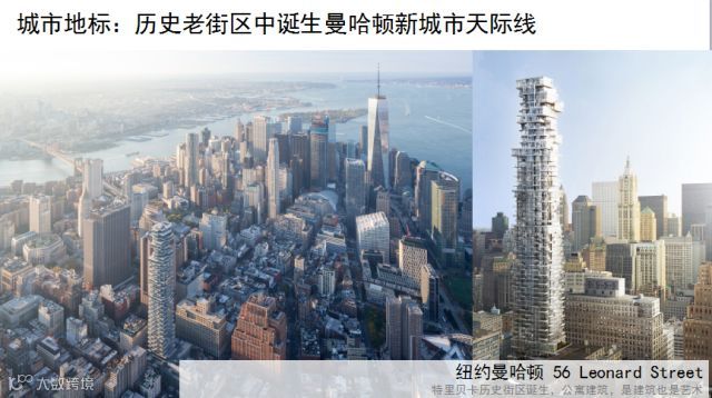 第四张照片是纽约曼哈顿56 Leonard Street,重逆曼哈顿的城市天际线,让历史老街区特里贝卡重新焕发出新的生命活力。