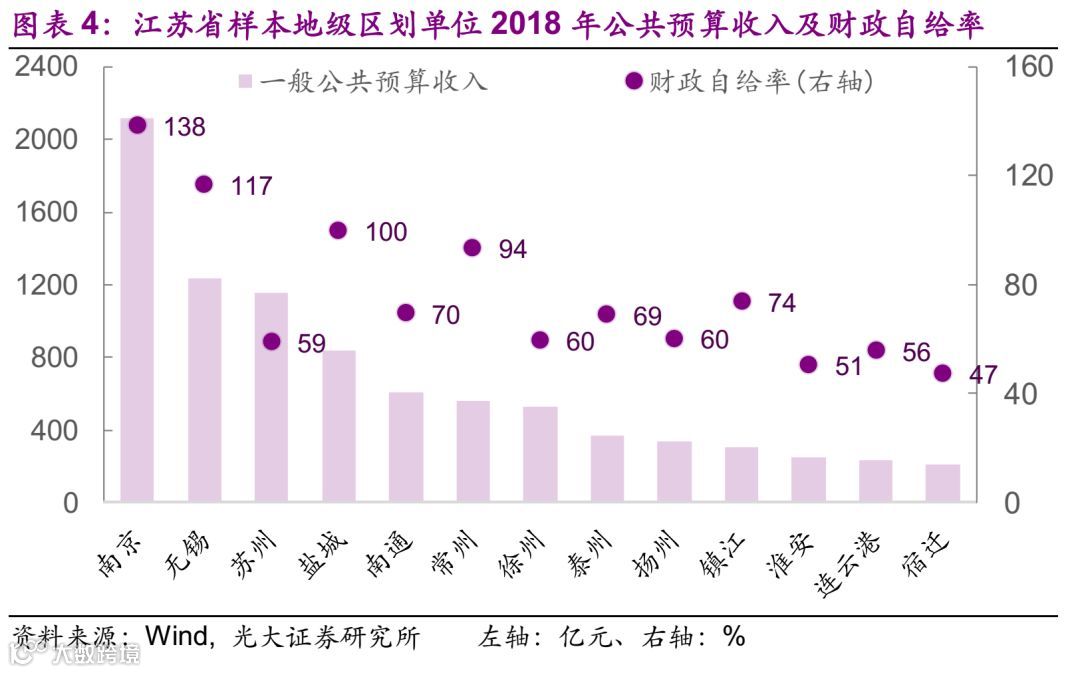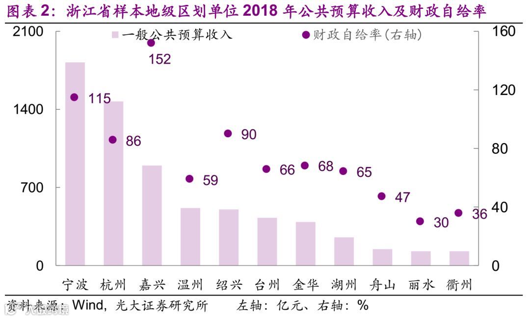 财政方面的情况,2018年一般公共预算收入最大的为南京市,为2120亿元,华东地区58个样本中一般公共预算收入的中位数为270亿元。