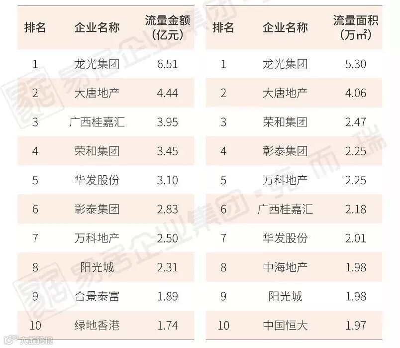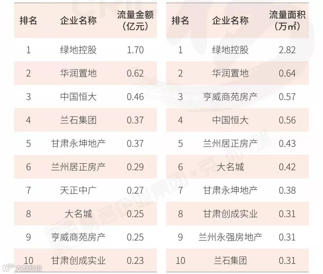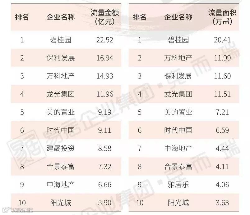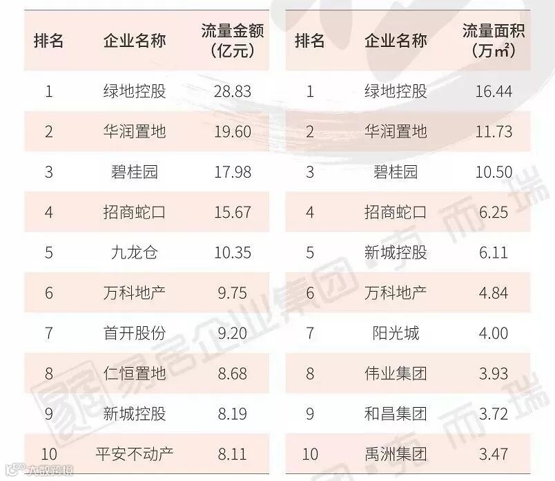 从面积榜来看,绿地股份、中交地产、银城地产分列流量面积榜前三,而中交凭借中交锦兰荟项目的热销,位列权益面积榜榜首。整体来看,上榜房企多为世茂股份、正荣集团、华润置地、招商蛇口等品牌房企,小型房企基本未上榜,企业集中度再次加强。
