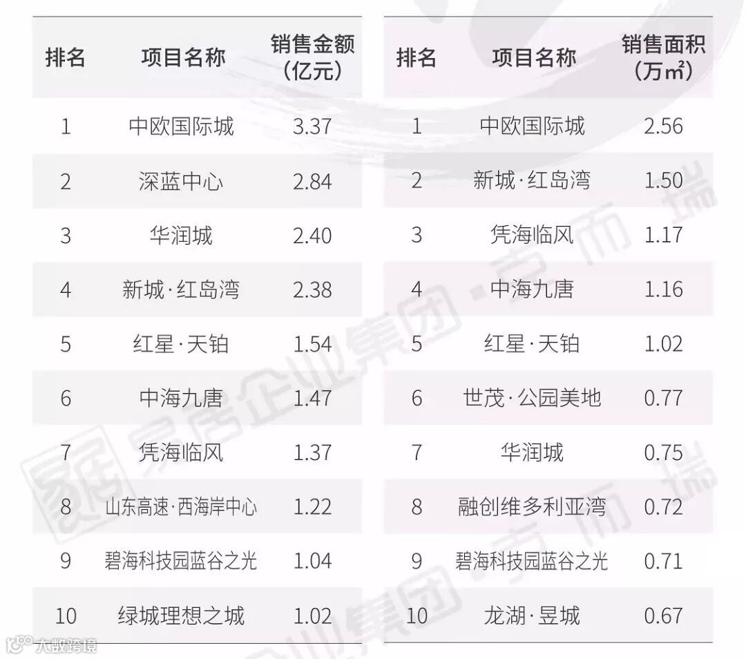 一份最全“29城房企&项目销售排行榜”,