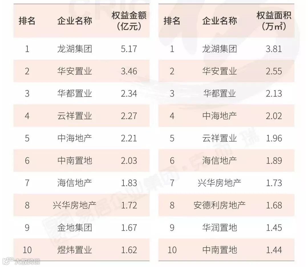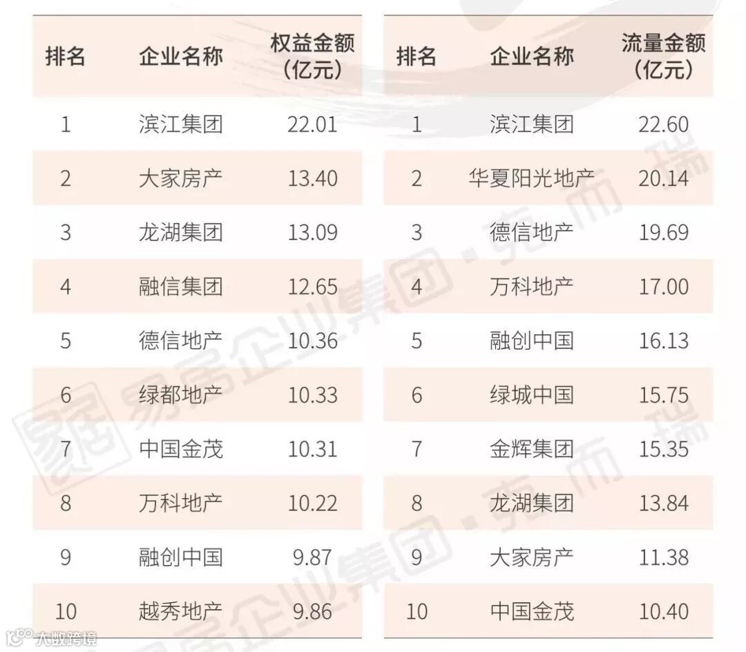 其中,滨江、华夏阳光、德信荣膺流量榜冠、亚、季军,滨江、大家、龙湖摘得权益榜三甲。