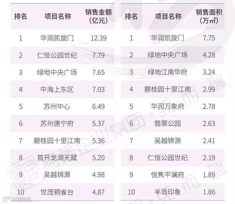 苏州项目销售排行榜(2019年1-2月)▼