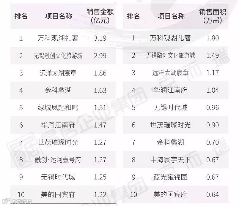 无锡项目销售排行榜(2019年1-2月)▼