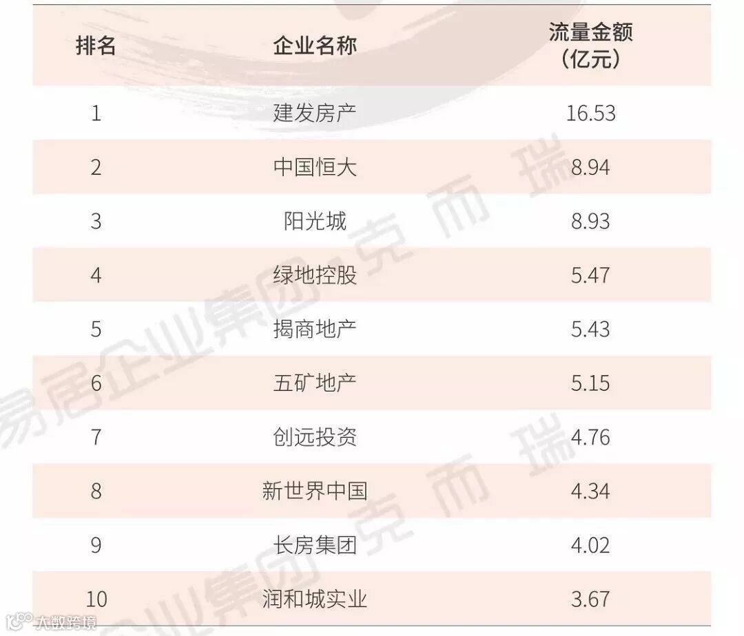 截至2019年2月28日,万科企业股份有限公司年度累计流量销售约23.09亿元,成功卫冕前两个月累计销售金额榜。吉林大众置业集团有限公司累计销售额约10.83亿元,位居金额流量榜亚军。
