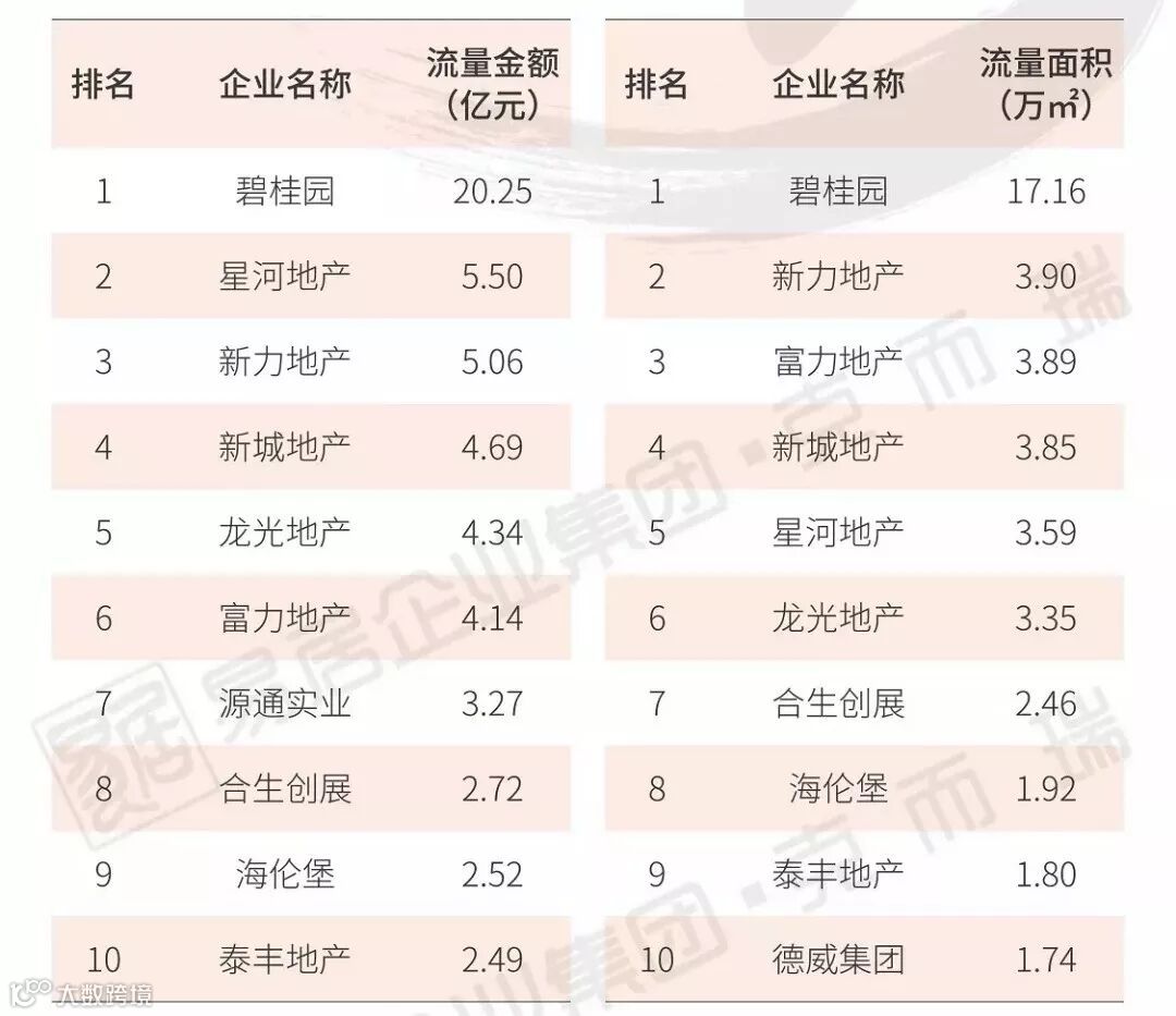 在流量金额排行榜中,绿地控股以28.83亿元的流量销售金额拔得头筹,华润置地和碧桂园分别以19.60亿、17.98亿紧随其后。