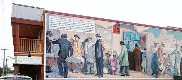 特别值得一提的是33号壁画,这幅壁画取名“一个中国小男孩的回忆”,说的是一个叫张宁的小男孩,他家在港口开了一家小店,他的妈妈被大家亲切的称呼为mother chang(张妈妈)。华人在一百多年前就来到了这里,从事木材搬运的工作,他们也是小镇最早的移民群体之一。