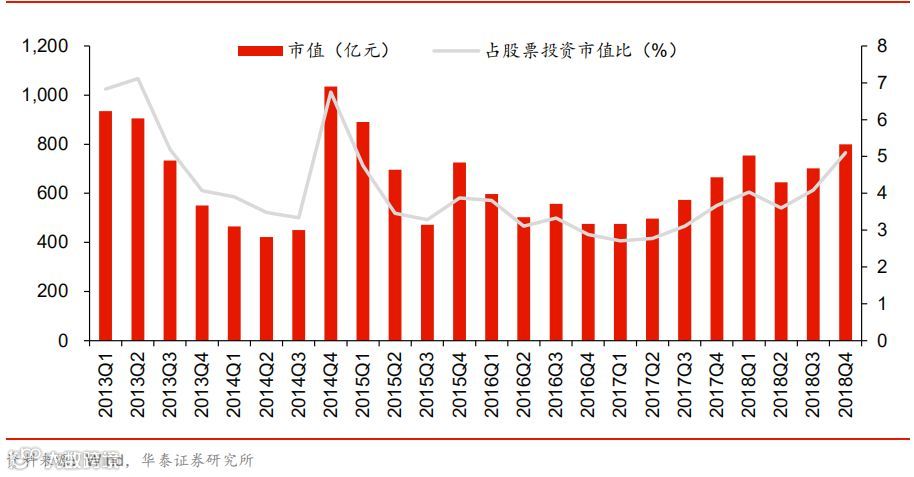 图:2018下半年以来公募基金房地产板块持仓总市值及占比逐步提升