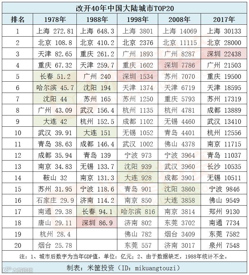 综合来看,改开40年,最耀眼的明星非深圳莫属,从一个默默无闻的小县城到全国第三大城市,是彻彻底底的“咸鱼翻身”。最没落的又数长春、哈尔滨,当年的明星城市如今却成了人们逃离之地,“四十年河东,四十年河西”。