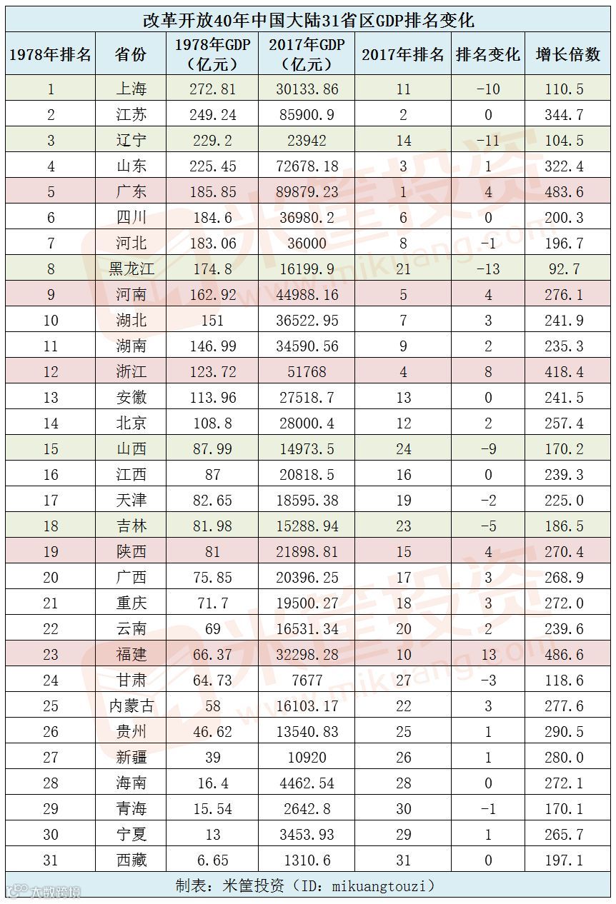 综上来看,改开40年,广东、福建、浙江受到的改革红利最大,经济增速最高,与没落的东三省和西北几省形成鲜明对比。