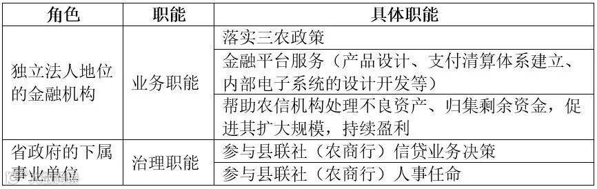 省联社角色定位来源于《关于明确对农村信用社监督管理职责分工指导意见的通知》(国办发〔2004〕48号)和《农村信用社省(自治区、直辖市)联合社管理规定》(银监发〔2003〕14号),既是一个市场主体性质的金融机构,又是一个行政机关性质的管理机构。