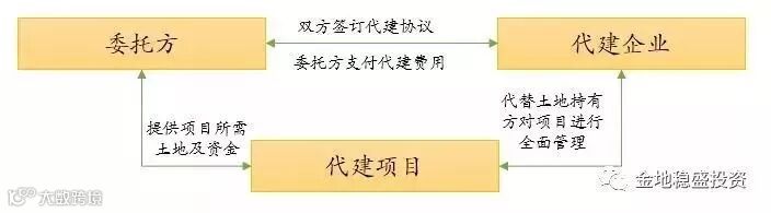 这种模式多见于项目主体拿地之后面临一定的开发资金短缺,代建企业在看好项目发展前景的基础上,引荐与自身保持战略被合作关系的金融资本,由金融资本作为代建委托方委托代建企业进行项目开发。项目主体与金融资本之间是类似于投资与被投资的关系,金融资本从中收取一定的投资收益,代建单位负责项目开发和管控,这种模式下,金融资本相当于是代建单位引荐的资本,要求代建单位有强大的资金整合能力,且品牌实力和开发能力又能得到项目主体的认可,对代建企业的要求较高,因此,这种模式的资本代建相对较少。
