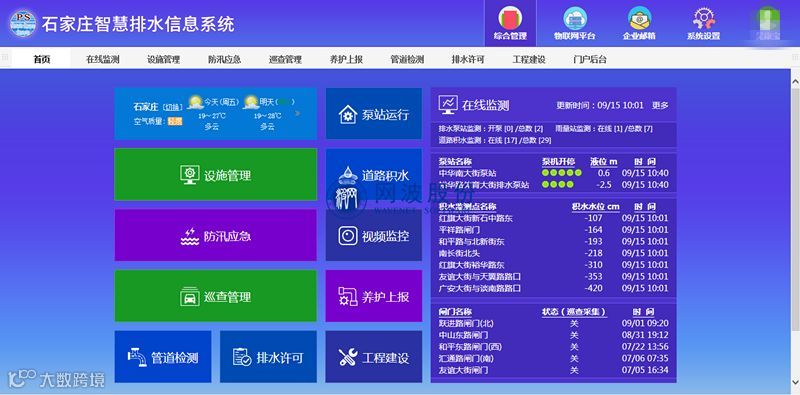 该系统具有时效性、开放性、综合性等建设特点,运用了移动互联网、云计算、卫星通信、地理信息等新兴技术,形成了以城市排水信息采集与监测为基础,以排水信息资源应用与分析为核心,以相关排水管理业务办理与处置为主线的排水信息化建设与管理框架,使石家庄的排水管理水平达到国内先进水平,在智慧城市的总体框架下,全面满足石家庄城市定位对城市排水的要求,,提升了防汛工作的效率,为石家庄市汛情信息提供了直观、便捷、高效的管理平台。