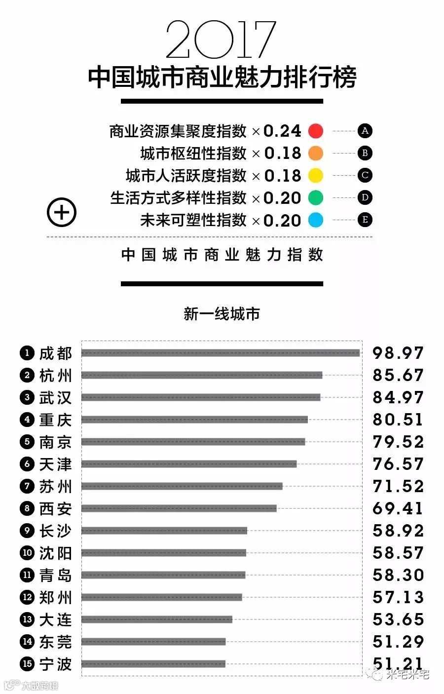 再来看新一线研究所最新发布的2017新一线城市排行榜▼