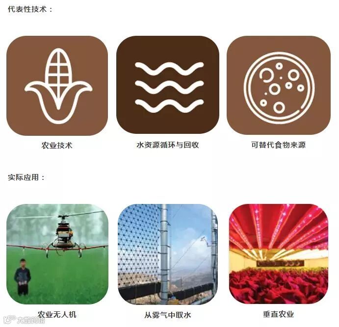 海水淡化、微型灌溉、污水回收、雨水收集等科技将会减缓人类对淡水水源的需求。基因改造农作物以及自动化将会允许农民使用更少的土地来出产更多的食物。食物和淡水将会成为新的科技热点,也会成为新的冲突爆发点。