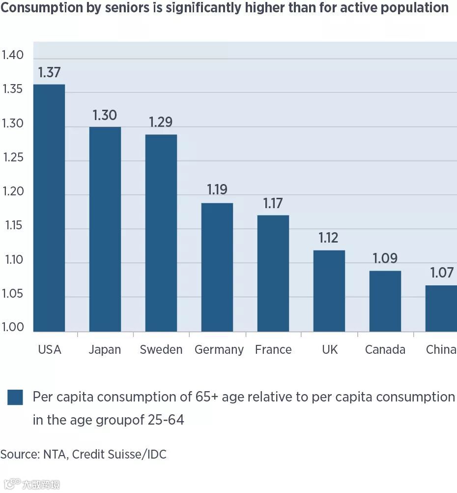 毕马威2016年调查的数据显示,从全球来看,65岁以上的老年人在网购上花的钱要比65岁以下的人多20%。其中美国老人最能花钱,网购消费比年轻人多37%。中国老人最保守,网购消费几乎与年轻人持平。