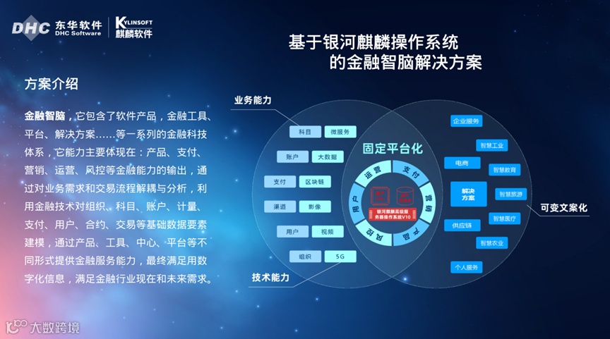 麒麟软件携手东华软件开展国产金融生态体系建设。以银河麒麟高级服务器操作系统V10为基座,共建金融智脑解决方案,不断增强在金融工具、金融平台、解决方案等多领域综合技术实力,打造合作典范。在未来,麒麟软件将持续携手东华软件,共同为金融行业数字化转型绘制更广阔的宏伟蓝图。