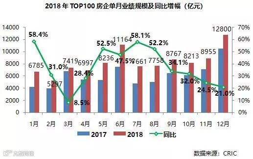 从2018年中国房地产行业整体业绩规模来看,仍然处于进一步增长态势,其中TOP100房企全年的销售金额进一步同比增长35%,行业集中度依旧。