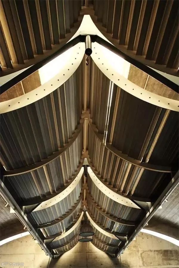 康在此展现了其个人对于建筑材料的偏好:将混凝土柱和薄壳形拱顶结构裸露在外,而非承重墙则采用罗马灰华石及玻璃板,以满足不同空间和位置的采光要求。