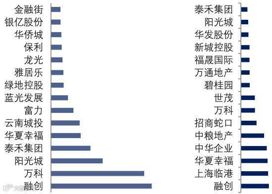 图:2018年百强TOP30房企收并购拿地金额前十城市(左)和拿地面积前十城市(右)