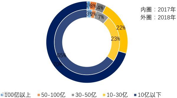 图:2017年和2018年房企收并购单笔交易金额占比