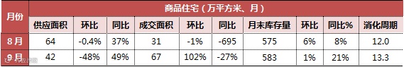 供应:预计在9月供应放量之后,10月供应量将会有明显下降。