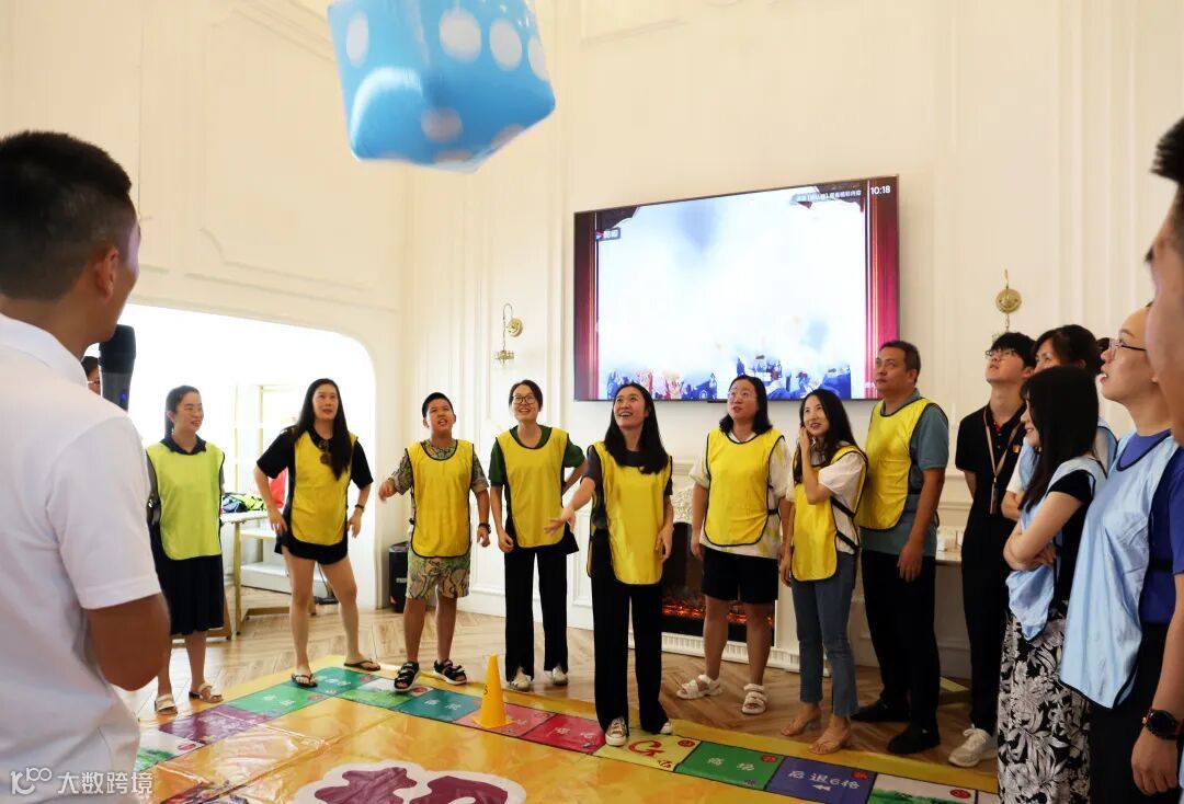 团建拓展任务开启,四大“企业”成立,决战商海!角色扮演董事长、财务总监、幸运骰手、执行团……成员们全情投入,团队在挑战中进行智慧闯关赚取钱币。骰子起起落落,悬念乍起,大家在起步与落步之间,时而期待、时而开怀、时而惋惜,现场气氛活跃。
