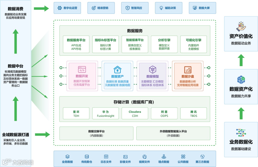 传统金融行业已经走过几十年,目前基本功能都已具备,重点解决业务流程和操作问题。但是,随着金融科技的进步、金融需求差异化以及金融风险复杂性的加剧,金融行业智能处理能力就变得尤为重要。它是未来金融行业发展的灵魂。数据做为金融行业最基本的生产要素,是智能处理的主要对象。因此未来金融行业数字化转型过程就是对数据收集、存储、计算(建模)、使用、展现的过程。