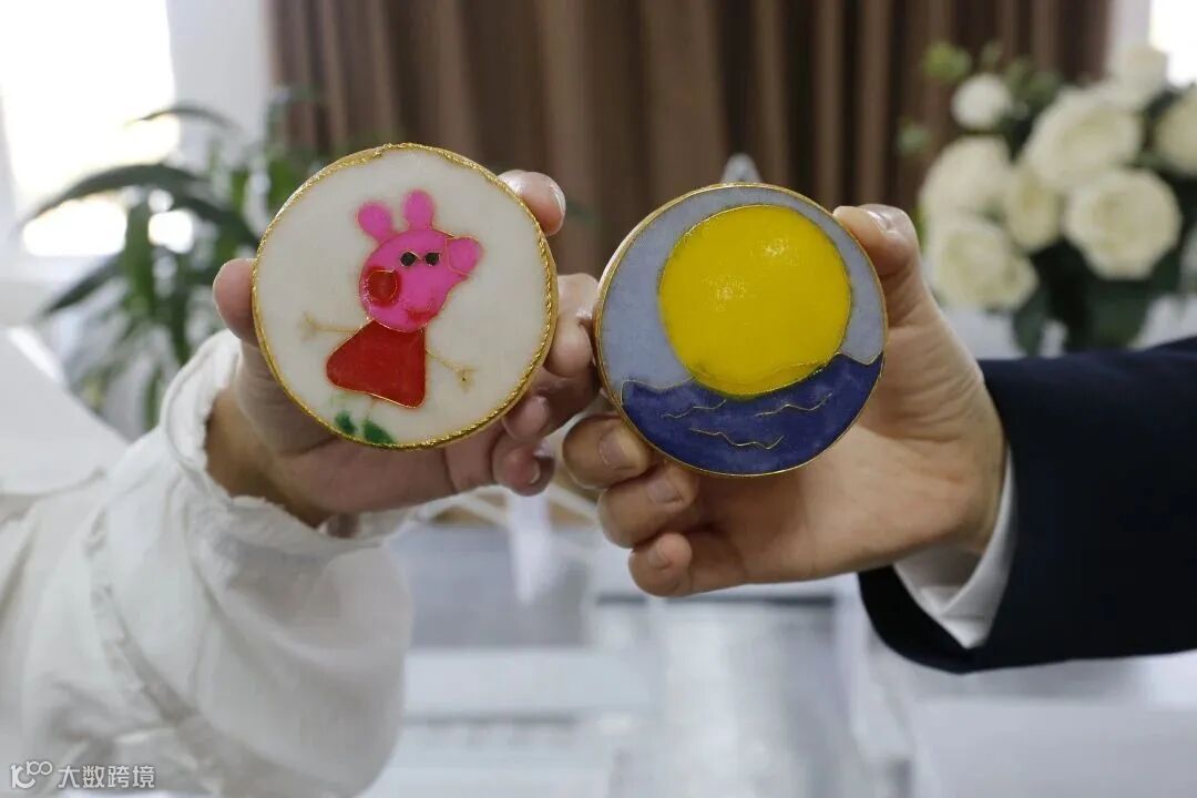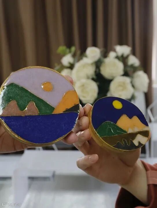 一件件充满质感、流光异彩的掐丝珐琅作品悄然而生,让大家眼前一亮。不同天然矿石的细致颗粒反射出绚烂色彩,绘画颜料丰富渐变,珐琅特有的斑驳感和立体感让女神们手中的作品犹如一件件精美的艺术品。