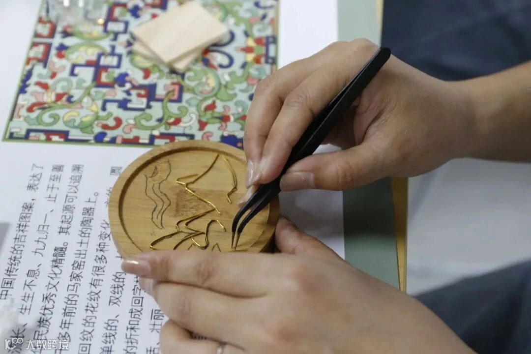 大家耐心细致地体验,完成绘图、掐丝、上色、点蓝、封胶等步骤,逐渐掌握这项传统手工技艺。